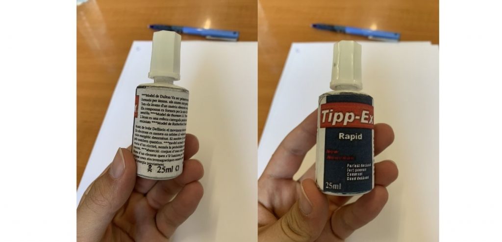 Em um tweet postado neste sábado, a professora mostrou um simples frasco de corretivo ou Tipp-ex, no entanto, tinha um segredo dentro: perfeitamente camuflados em seu rótulo estavam os notas de exame.